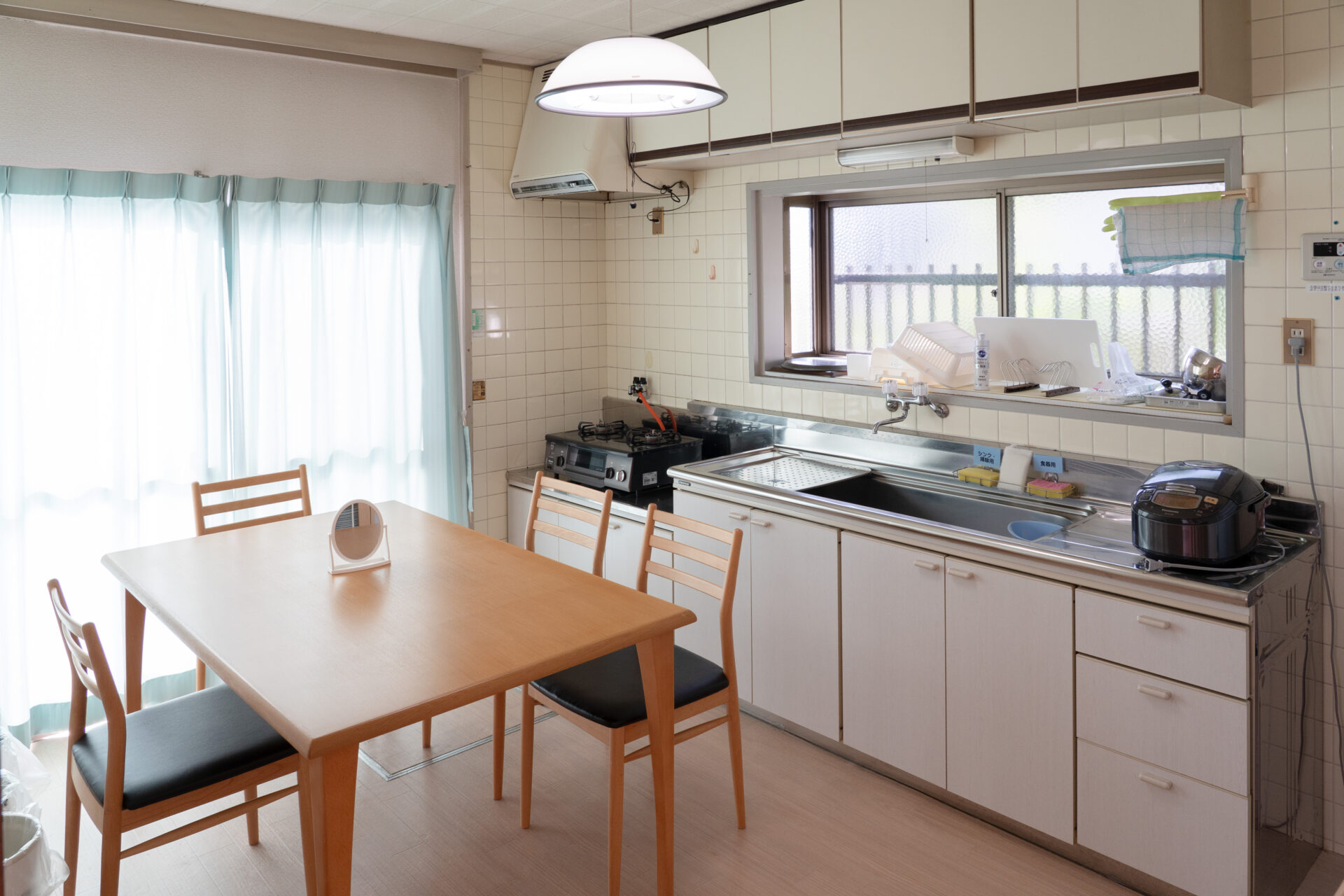 利用は最長 2週間(1組、3~7日以内:10,000 円、8~14 日以内:20,000 円)、家具・家電付きの 4DK、貸出自転車 2 台に駐車場を完備。モバイル WiFi も貸出可能です。