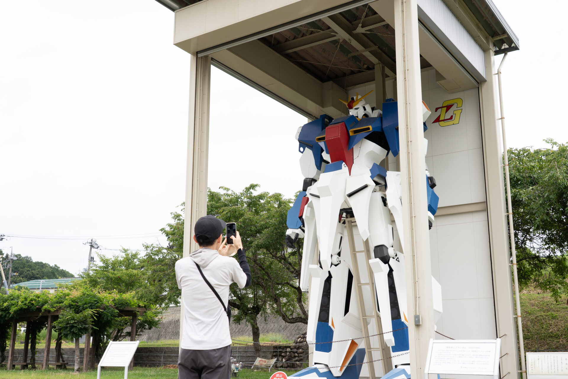 地元でも有名な、久米の里にある高さ7mの巨大モビルスーツ。