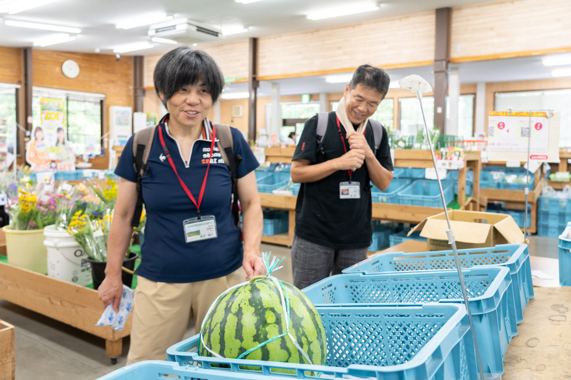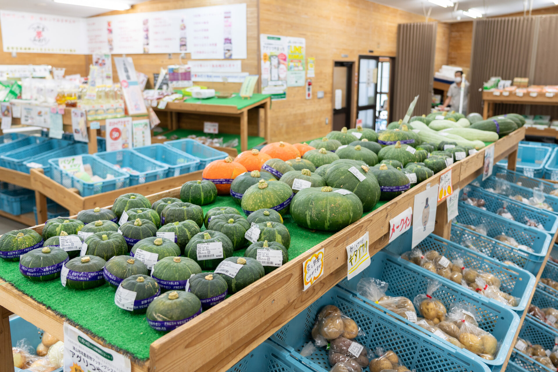 地元ではおなじみの人気店、地産地消センター”サンヒルズ”。旬の野菜や果物、お惣菜までリーズナブルな価格で販売されています。午後の訪問になったため、人気の野菜はだいぶ品薄状態に。それだけ地元の人々に愛されている場所だということが伝わってきます。