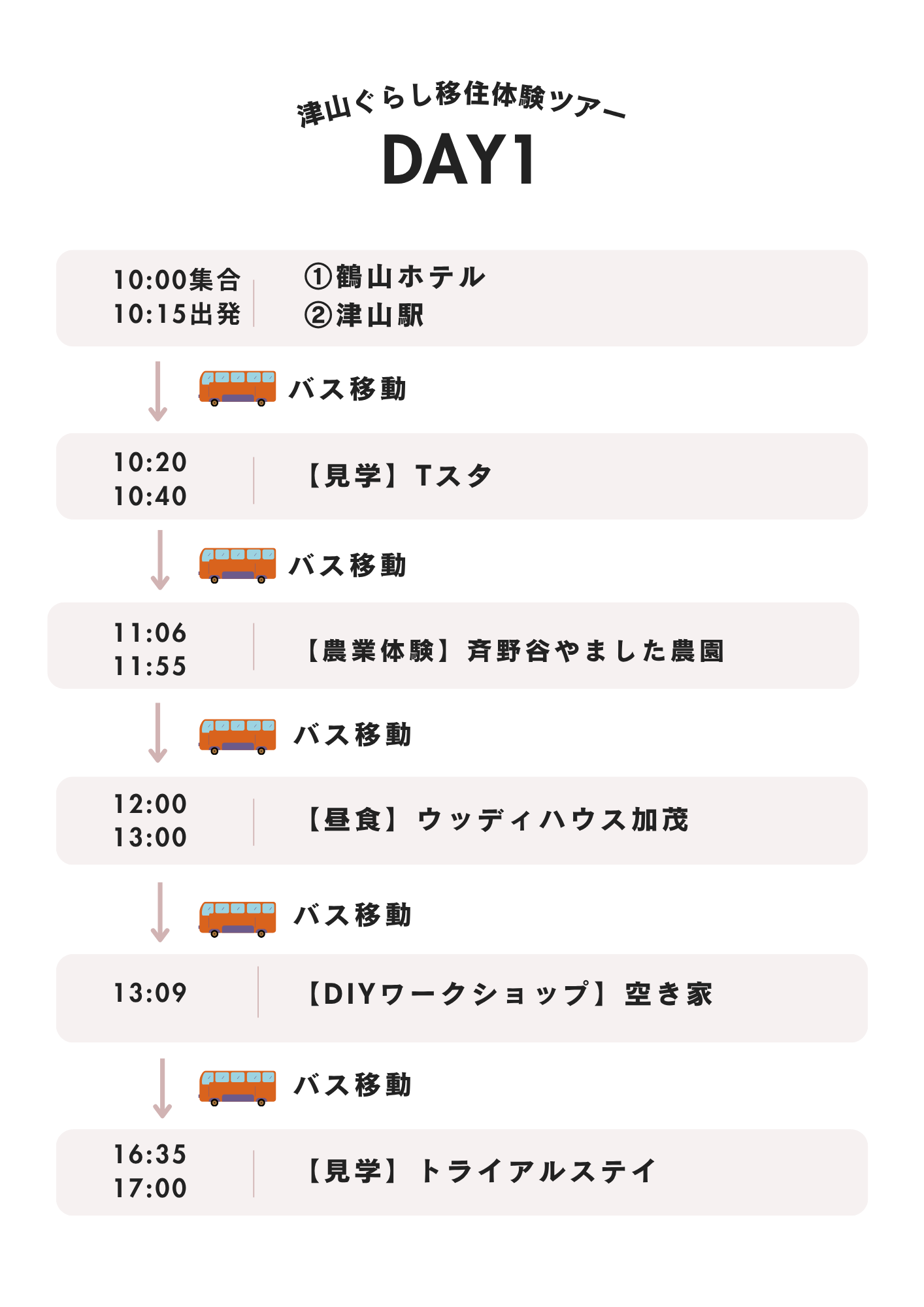 「皆さんが本当にあたたかく迎えてくれて、津山への印象がさらに良くなりました」「些細な質問にも真摯に向き合ってもらえるので、スタッフの方ともっとお話ししたいです」と、明日への期待がますます膨らむ充実の 1 日目となりました。
